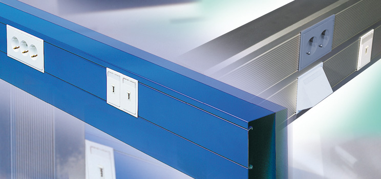 Gerätekanalunterteil, aus bandverzinktem Stahl nach DIN EN 10346, Sichtflächen in RAL Farbton gemäß Herstellerkatalog elektrostatisch pulverbeschichtet, durchlaufende Perforation im Kanalrücken zur flexiblen Montage auf Wand oder /-konsole, durchgehend Haltelaschen zur Aufnahme von Trennprofilen im Rückenteil, Gerätemontage im Leitungszug mit einrastbarer Gerätedose für Einbauprogramme mit 80 mm Abdeckrahmen und 60 mm Befestigungsspur, Geräteeinbau ohne Lochblenden, einschließlich 3 Kabelhalteklammern GKF... je 2 m Lieferlänge, Zubehör für den Potentialausgleich muss gesondert bestellt werden. VDE zertifiziert!