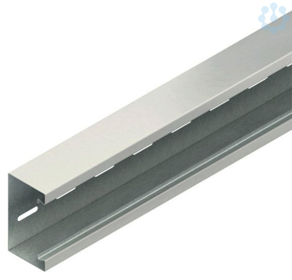 Gerätekanalunterteil, aus bandverzinktem Stahl nach DIN EN 10346, Sichtflächen in RAL Farbton gemäß Herstellerkatalog elektrostatisch pulverbeschichtet, durchlaufende Perforation im Kanalrücken zur flexiblen Montage auf Wand oder /-konsole, durchgehend Haltelaschen zur Aufnahme von Trennprofilen im Rückenteil, Gerätemontage im Leitungszug mit einrastbarer Gerätedose für Einbauprogramme mit 80 mm Abdeckrahmen und 60 mm Befestigungsspur, Geräteeinbau ohne Lochblenden, einschließlich 3 Kabelhalteklammern GKF... je 2 m Lieferlänge, Zubehör für den Potentialausgleich muss gesondert bestellt werden. VDE zertifiziert!