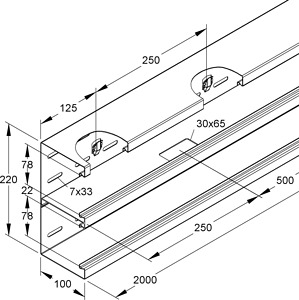Doppelzügiges Gerätekanalunterteil, aus bandverzinktem Stahl nach DIN EN 10346, Sichtflächen in RAL Farbton gemäß Herstellerkatalog elektrostatisch pulverbeschichtet, mit zwei mittels nachträglich montierbaren, selbstkontaktierenden Trennprofil aus Aluminium mit Kabeldurchführöffnungen getrennten, gleich großen Leitungszügen, durchlaufende Perforation im Kanalrücken zur flexiblen Montage auf Wand oder /-konsole, durchgehende Haltelaschen zur Aufnahme von Trennprofilen im Rückenteil, Gerätemontage in den Leitungszügen mit einrastbarer Gerätedose, für Einbauprogramme mit 80 mm Abdeckrahmen und 60 mm Befestigungsspur, Geräteeinbau ohne Lochblenden, einschließlich 6 Kabelhalteklammern je 2 m Lieferlänge, Zubehör für den Potentialausgleich muss gesondert bestellt werden. VDE zertifiziert!