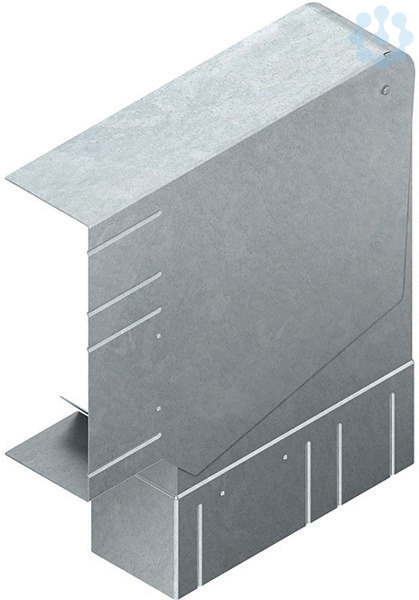 Gerätekanal-Vertikaleck, verstellbar, asymmetrisch mit einem Abgang nach unten, schwenkbare Schenkel ermöglichen einen Ausgleich von Winkeltoleranzen im Bereich von 85°-95°, zum Aufsetzen auf den Gerätekanal, Potentialausgleichsleitung GSLH... und zwangsläufig kontaktierende Stoßstellenverbinder DSTA... oder Potentialausgleichsklemme GPK 63 müssen gesondert bestellt werden.