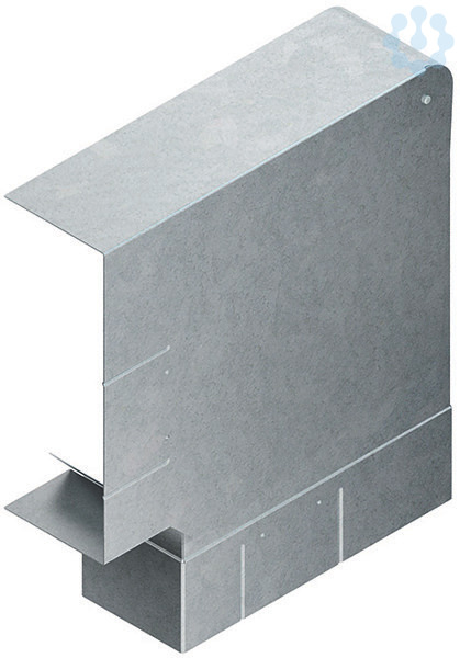 Gerätekanal-Vertikaleck, verstellbar, asymmetrisch mit einem Abgang nach unten, schwenkbare Schenkel ermöglichen einen Ausgleich von Winkeltoleranzen im Bereich von 85°-95°, aus bandverzinktem Stahl nach DIN EN 10346, zum Aufsetzen auf den Gerätekanal, Potentialausgleichsleitung GSLH... und zwangsläufig kontaktierende Stoßstellenverbinder GSTA... oder Potentialausgleichsklemme GPK 63 müssen gesondert bestellt werden.