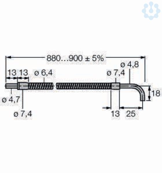 Glas-Lichtleiter, Einzelleiter, Gesamtlänge des Lichtleiters: ± 914 mm, Betriebsart: Einweglichtschranke, Edelstahlummantelung, flexibel, Betriebstemperatur: -140...+249 °C, Lichtleiter-Bündeldurchmesser: 3.2 mm, Fühler-Endhülse: abgewinkelt (90°)