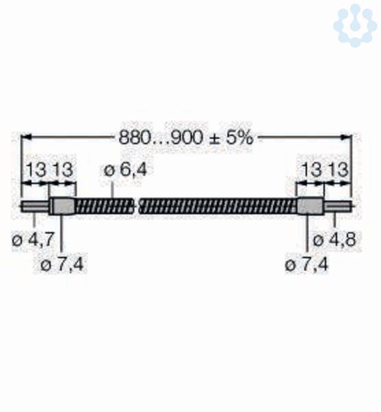 Glas-Lichtleiter, Einzelleiter, Gesamtlänge des Lichtleiters: ± 914 mm, Betriebsart: Einweglichtschranke, Edelstahlummantelung, flexibel, Betriebstemperatur: -140...+249 °C, Lichtleiter-Bündeldurchmesser: 3.2 mm, Fühler-Endhülse: glatt