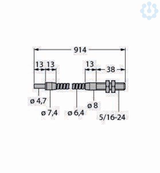 Glas-Lichtleiter, Einzelleiter, Gesamtlänge des Lichtleiters: ± 914 mm, Betriebsart: Einweglichtschranke, Edelstahlummantelung, flexibel, Betriebstemperatur: -140...+249 °C, Lichtleiter-Bündeldurchmesser: 3.2 mm, Fühler-Endhülse: Gewinde