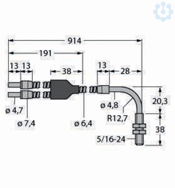 Glas-Lichtleiter, Gabelleiter, Gesamtlänge des Lichtleiters: ± 914 mm, Betriebsart: Reflexionslichttaster / -schranke, Edelstahlummantelung, flexibel, Betriebstemperatur: -140...+249 °C, Lichtleiter-Bündeldurchmesser: 3.2 mm, Fühler-Endhülse: abgewinkelt (90°), Gewinde