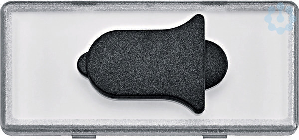 Für Wippen und Steckdosen mit großem Schriftfeld. Das bestehende Schriftfeld wird durch das tastbare Kontrast-Symbol ausgetauscht. Ausführung Klingel, glasklar.