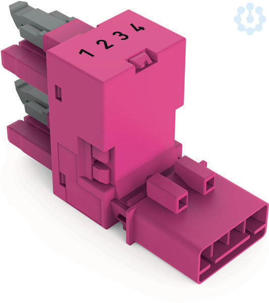 h-Verteiler. 4-polig. Kod. B. 1 Eingang. 2 Ausgänge. einseitige Abgänge. 2 Verriegelungsklinken. pink