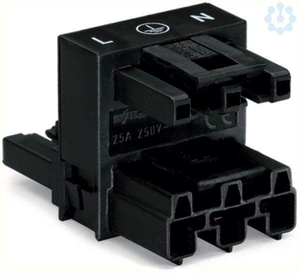 h-Verteiler. 3-polig. Kod. A. 1 Eingang. 2 Ausgänge. 2 Verriegelungsklinken. schwarz