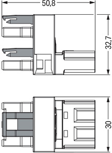 h-Verteiler. 3-polig. Kod. B. 1 Eingang. 2 Ausgänge. einseitige Abgänge. 2 Verriegelungsklinken. grau