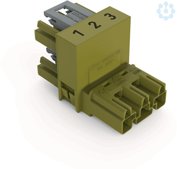 h-Verteiler. 3-polig. Kod. B. 1 Eingang. 2 Ausgänge. einseitige Abgänge. 2 Verriegelungsklinken. hellgrün