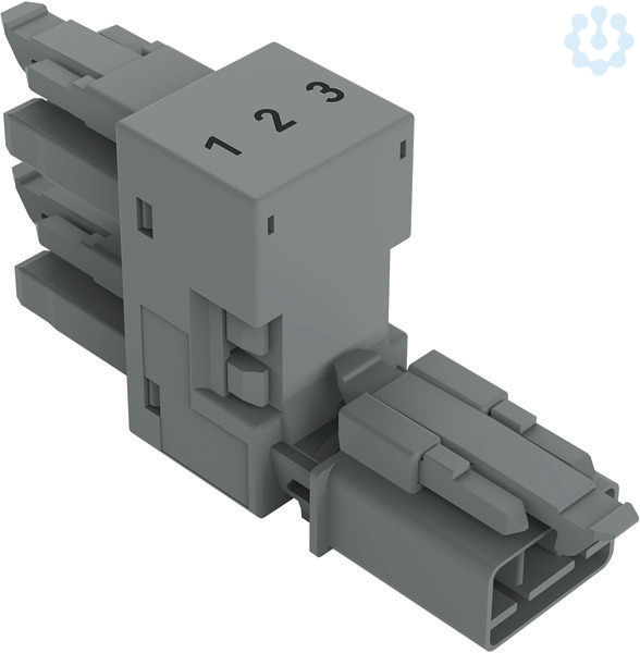 h-Verteiler. 3-polig. Kod. B. 1 Eingang. 2 Ausgänge. einseitige Abgänge. 3 Verriegelungsklinken. für fliegende Verbindungen. grau