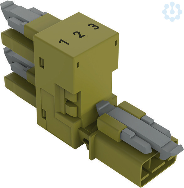 h-Verteiler. 3-polig. Kod. B. 1 Eingang. 2 Ausgänge. einseitige Abgänge. 3 Verriegelungsklinken. für fliegende Verbindungen. hellgrün