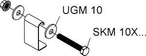 Hängestiel-Distanzprofil, für die Auslegermontage an Hängestiel oder Profil, um die Verformung des Hängestielprofils bei der Montage von Ausleger zu verhindern, ist aus statischen Gründen das Hängestiel-Distanzprofil mit Sechskantschraube zu berücksichtigen, bei einer einseitigen Befestigung des Auslegers am Hängestielprofil ist bevorzugt die geschlossene Seite des Auslegers fluchtend mit dem Profilsteg des Hängestiels anzubringen, einschließlich anteilmäßigem Befestigungszubehör in Edelstahl SKM 10X70 E4 und zwei Karosseriescheiben UGM 10 E5.