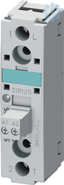 Halbleiterrelais, 1-phasig 3RF2 Baubreite 22,5 mm, 30 A 24-230 V / DC 4-30 V Schraubanschluss Halbleiterrelais SIRIUS 3RF21 zum Schalten von ohmschen/induktiven Lasten, z. B. von Heizkörpern oder Ventilen in einer Abfüllanlage.Die Geräte schalten verschleißfrei und lautlos und sind daher ideal für geräuschsensible Bereiche (Büros, Krankenhäuser). Sie sind auch bei hohen Schaltfrequenzen äußerst zuverlässig. Die kompakte Bauweise spart Platz auf der Kühlfläche. Die Halbleiterrelais lassen sich zudem durch die standardisierten Funktionsmodule 3RF29 für vielfältige Anwendungen durch einfaches Aufklicken erweitern. Die Geräte sind weltweit zugelassen (z.B. IEC und UL/CSA).Die Halbleiterrelais sind als 1-phasige Geräte in zwei Baubreiten oder als 3-phasige Geräte verfügbar. Sie sind für verschiedene Leistungen und Bemessungsbetriebsspannungen erhältlich. Ausgelegt für AC- oder DC-Betätigung stehen sie mit Schraub-, Federzug- oder Ringkabelschuhanschluss zur Verfügung.Als Zubehör stehen neben den Funktionsmodulen 3