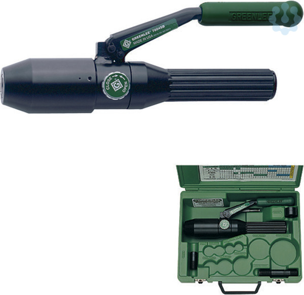 Ideal für schnelles, frontales Stanzen von Gehäusen. Kompakte Bauform. Handhydraulik-Stanze mit geradem Kopf. Geeignet für Formlocher bis zu einer Maximalgröße von 68 x 68 mm bzw. 35 x 65 mm, Rundlocher bis ISO 63 (Durchmesser 64 mm ).