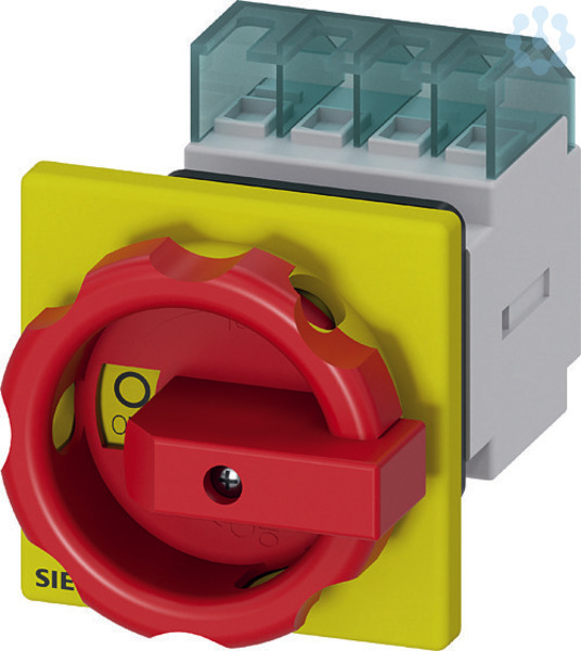 SENTRON, Lasttrennschalter 3LD, Not-Aus-Schalter, 3- polig, Iu: 16 A, Betriebsleistung / bei AC-23 A bei 400V: 7,5 kW, Frontbefestigt, Drehantrieb, rot/gelb, Zentralbefestigung 22,5mm der Handhabe Der Haupt- und Not-AUS-Schalter 3LD als Reparaturschalter für eine sichere Abschaltung von Lasten in unterschiedlichsten Umgebungen. Die Einsatzmöglichkeiten der Netztrenneinrichtungen 3LD sind vielfältig. Nach Netztrennungen sorgen sie für die sichere Freischaltung der gesamten elektrischen Ausrüstung, schalten so zum Beispiel Drehstrommotoren, aber auch Klima- und Lüftungsanlagen. 3LD haben sich in vielen Bereichen bewährt, insbesondere in Be- und Verarbeitungsmaschinen des Maschinen- und Förderanlagenbaus, in der chemischen oder in der Nahrungsmittel- und Getränkeindustrie. Die Siemens Haupt- und Not-AUS-Schalter 3LD zeichnen sich vor allem aus durch: 1. Modularer Aufbau, schnelle einfache Montage von Hilfsschaltern, N- PE-Klemme oder 4. Pol. 2. Vielseitig und weltweit einsetzbar dank internationaler IEC-, UL-, s