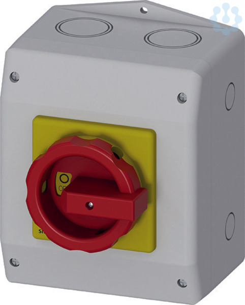 SENTRON, Lasttrennschalter 3LD, Not-Aus-Schalter, 3- polig, Iu: 63 A, Betriebsleistung / bei AC-23 A bei 400V: 22 kW, Isolierstoff- Kapselung für metrische Verschraubung, 1Ö, 1S, Drehantrieb, rot/gelb Der Haupt- und Not-AUS-Schalter 3LD für eine sichere Abschaltung von Lasten in unterschiedlichsten Umgebungen. Die Einsatzmöglichkeiten der Netztrenneinrichtungen 3LD3 sind vielfältig. Nach Netztrennungen sorgen sie für die sichere Freischaltung der gesamten elektrischen Ausrüstung, schalten so zum Beispiel Drehstrommotoren, aber auch Klima- und Lüftungsanlagen. 3LD3 sind zudem prädestiniert für den Einsatz von Steuer- oder Schaltschränken insbesondere für Anwendungen in kleinen Maschinen (z.B. Sägen, Kompressoren, Pumpen, Betonmischer, Bohrmaschinen, Fräsen und Holzbearbeitungsmaschinen). Die Siemens Haupt- und Not-AUS-Schalter 3LD zeichnen sich vor allem aus durch: 1. Modularer Aufbau, schnelle einfache Montage von Hilfsschaltern, N- PE-Klemme oder 4. Pol. 2. Vielseitig einsetzbar dank lokaler Approbationen. 3