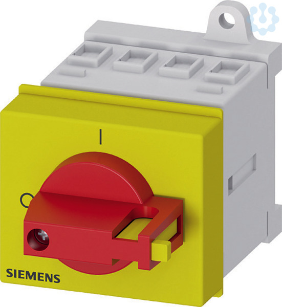 SENTRON, Lasttrennschalter 3LD, Not-Aus-Schalter, 4- polig, Iu: 16 A, Betriebsleistung / bei AC-23 A bei 400V: 7,5 kW, Verteilereinbau, Knebelantrieb, rot/gelb, Handhabe direkt am Schalter Der Haupt- und Not-AUS-Schalter 3LD als Reparaturschalter für eine sichere Abschaltung von Lasten in unterschiedlichsten Umgebungen. Die Einsatzmöglichkeiten der Netztrenneinrichtungen 3LD sind vielfältig. Nach Netztrennungen sorgen sie für die sichere Freischaltung der gesamten elektrischen Ausrüstung, schalten so zum Beispiel Drehstrommotoren, aber auch Klima- und Lüftungsanlagen. 3LD haben sich in vielen Bereichen bewährt, insbesondere in Be- und Verarbeitungsmaschinen des Maschinen- und Förderanlagenbaus, in der chemischen oder in der Nahrungsmittel- und Getränkeindustrie. Die Siemens Haupt- und Not-AUS-Schalter 3LD zeichnen sich vor allem aus durch: 1. Modularer Aufbau, schnelle einfache Montage von Hilfsschaltern, N- PE-Klemme oder 4. Pol. 2. Vielseitig und weltweit einsetzbar dank internationaler IEC-, UL-, sowie Sch