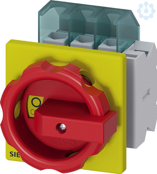 SENTRON, Lasttrennschalter 3LD, Not-Aus-Schalter, 3- polig, Iu: 25 A, Betriebsleistung / bei AC-23 A bei 400V: 9,5 kW, Frontbefestigt, 1Ö, 1S, Drehantrieb, rot/gelb, 4-Loch Befestigung der Handhabe Der Haupt- und Not-AUS-Schalter 3LD als Reparaturschalter für eine sichere Abschaltung von Lasten in unterschiedlichsten Umgebungen. Die Einsatzmöglichkeiten der Netztrenneinrichtungen 3LD sind vielfältig. Nach Netztrennungen sorgen sie für die sichere Freischaltung der gesamten elektrischen Ausrüstung, schalten so zum Beispiel Drehstrommotoren, aber auch Klima- und Lüftungsanlagen. 3LD haben sich in vielen Bereichen bewährt, insbesondere in Be- und Verarbeitungsmaschinen des Maschinen- und Förderanlagenbaus, in der chemischen oder in der Nahrungsmittel- und Getränkeindustrie. Die Siemens Haupt- und Not-AUS-Schalter 3LD zeichnen sich vor allem aus durch: 1. Modularer Aufbau, schnelle einfache Montage von Hilfsschaltern, N- PE-Klemme oder 4. Pol. 2. Vielseitig und weltweit einsetzbar dank internationaler IEC-, UL-,