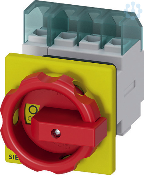 SENTRON, Lasttrennschalter 3LD, Not-Aus-Schalter, 4- polig, Iu: 32 A, Betriebsleistung / bei AC-23 A bei 400V: 11,5 kW, Frontbefestigt, Drehantrieb, rot/gelb, Zentralbefestigung 22,5mm der Handhabe Der Haupt- und Not-AUS-Schalter 3LD als Reparaturschalter für eine sichere Abschaltung von Lasten in unterschiedlichsten Umgebungen. Die Einsatzmöglichkeiten der Netztrenneinrichtungen 3LD sind vielfältig. Nach Netztrennungen sorgen sie für die sichere Freischaltung der gesamten elektrischen Ausrüstung, schalten so zum Beispiel Drehstrommotoren, aber auch Klima- und Lüftungsanlagen. 3LD haben sich in vielen Bereichen bewährt, insbesondere in Be- und Verarbeitungsmaschinen des Maschinen- und Förderanlagenbaus, in der chemischen oder in der Nahrungsmittel- und Getränkeindustrie. Die Siemens Haupt- und Not-AUS-Schalter 3LD zeichnen sich vor allem aus durch: 1. Modularer Aufbau, schnelle einfache Montage von Hilfsschaltern, N- PE-Klemme oder 4. Pol. 2. Vielseitig und weltweit einsetzbar dank internationaler IEC-, UL-,