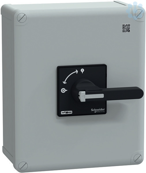 Vario-Trennschalter im Gehäuse VBF 3P, 140 A. Frontschild 90 x 90 mm. Komplettgerät, 3-polig, IP 65, mit Drehantrieb. Schwarzer Griff, abschließbar mit 3 Vorhängeschlössern DM 4 mm bis DM 8 mm (Lieferung Ohne Vorhängeschlösser). Schalterstellung O I, Frontschild schwarz.