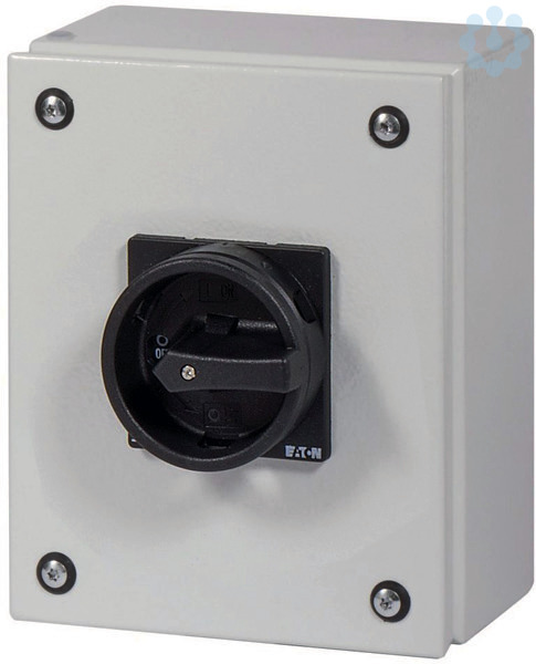 Hauptschalter, P3, 63 A, Aufbau, 3-polig, HALT-Funktion, mit schwarzem Drehgriff und Sperrkranz, abschließbar in 0-Stellung, im Stahlgehäuse