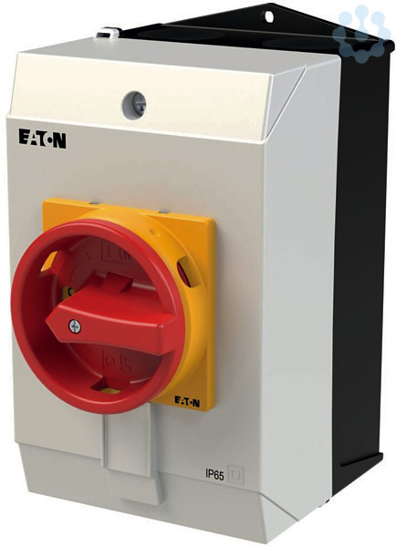 Hauptschalter, Sortiment: Hauptschalter, Wartungsschalter, Reparaturschalter, Typkenner: T3, STOPP-Funktion: NOT-AUS-Funktion, mit rotem Drehgriff und gelbem Sperrkranz, 8-polig, Abschließbarkeit: abschließbar in 0-Stellung, Schutzart: IP65, Bauform: Aufbau, Schaltwinkel: 90 °, Bemessungsbetriebsleistung AC-23A, 50 - 60 Hz 400 V: P = 15 kW, Bemessungsdauerstrom: Iu = 32 A, 4 Baueinheit(en), Normen und Bestimmungen: IEC/EN 60947, VDE 0660, IEC/EN 60204, Lasttrennschalter nach IEC/EN 60947-3