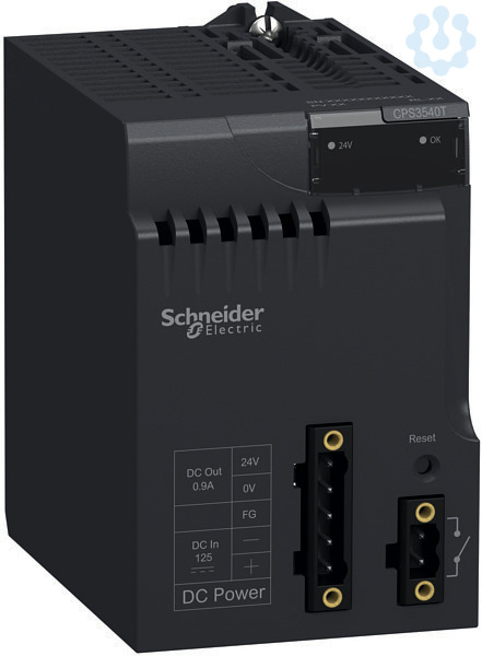 Stromversorgungsmodul M340, 125 V AC, für erweiterten Temperaturbereich. Leistung 24V Geber 21,6 W, Leistung 24V Modulträger 31,2 W, Leistung 3V 15 W, Leistung Gesamt 36 W. Artikel-Nr. mit H (Harsh) -25 bis +70° C und Schutzlackierung.