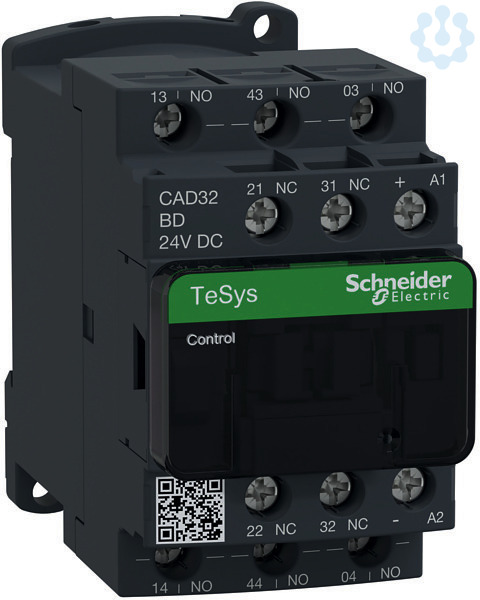 TeSys Hilfsschütze CAD. Hilfsschütz, Gleichspannungsbetätigt 24 V DC mit integrierter Schutzbeschaltung. Anschluss Schraubklemmen, Hilfsschalter 3 S + 2 Ö, MTZ 12. Gerätebreite 45 mm, Schraub- und Schnappbefestigung. Fünf integrierte Hilfskontakte, erweiterbar um bis zu neun Hilfskontakte.