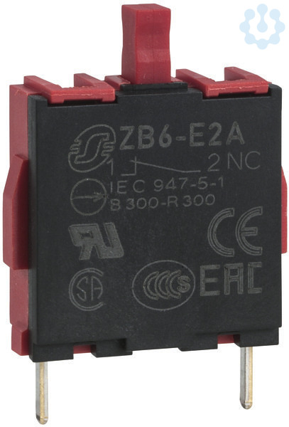 Hilfsschalterblock für Kopf, 1Ö mit Pins für Platine. Es ist Teil der Baureihe Harmony XB6 mit einem Durchmesser von 16 mm, kompakte Kunststoffdrucktaster, Schalter und Leuchtmelder.