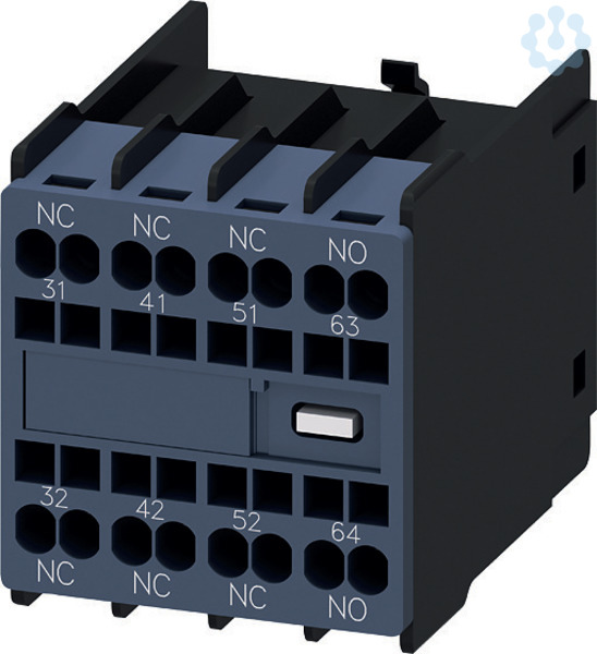 Hilfsschalter frontseitig, 1 S + 3 Ã- Strombahn 1 Ã-, 1 Ã-, 1 Ã-, 1 S für 3RH2 und 3RT2 Federzuganschluss 31/32 , 41/42 , 51/52 , 63/64 Hilfsschalter SIRIUS 3RH29 zur Erweiterung der Hilfskontakte im Steuerstromkreis.