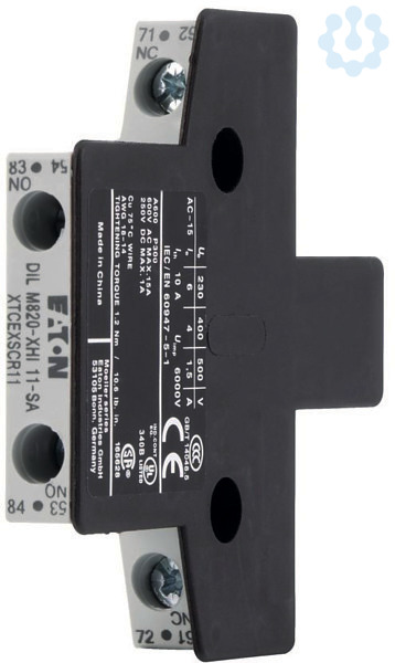 Hilfsschalterbaustein, mit zwangsgeführten Kontakten, Funktion: für Standardanwendungen, 2-polig, Anschlusstechnik: Schraubklemmen, Bemessungsbetriebsstrom AC-15 220 V 230 V 240 V: Ie= 4 A, Bemessungsbetriebsstrom AC-15 380 V 400 V 415 V: Ie= 4 A, Bemessungsbetriebsstrom AC-15 380 V 400 V 500 V: Ie= 4 A, Kontaktbestückung S = Schließer: 1 S, Kontaktbestückung Ö = Öffner: 1 Ö, Montageart: Seitenanbau, verwendbar für: DILM250 - DILH2600, DILDC300 - DILDC600, Ausführung: seitliche Hilfsschalter, Hinweise: Zwangsgeführte Kontakte, nach IEC/EN 60947-5-1 Anhang L, innerhalb der Hilfsschalterbausteine, Hilfsöffner verwendbar als Spiegelkontakt nach IEC/EN 60947-4-1 Anhang F (nicht Spätöffner)