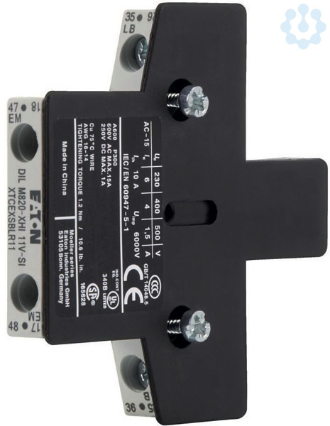 Hilfsschalterbaustein, Funktion: für Standardanwendungen, 2-polig, Anschlusstechnik: Schraubklemmen, Bemessungsbetriebsstrom AC-15 220 V 230 V 240 V: Ie= 4 A, Bemessungsbetriebsstrom AC-15 380 V 400 V 415 V: Ie= 4 A, Bemessungsbetriebsstrom AC-15 380 V 400 V 500 V: Ie= 4 A, Kontaktbestückung SF = Frühschließer: 1 SF, Kontaktbestückung ÖS = Spätöffner: 1 ÖS, Montageart: Seitenanbau, verwendbar für: DILM250 - DILH2600, DILDC300 - DILDC600, Ausführung: seitliche Hilfsschalter