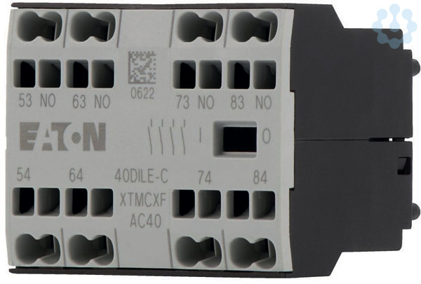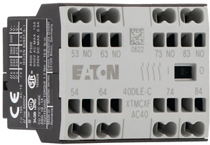 Hilfsschalterbaustein, mit zwangsgeführten Kontakten, Schaltglieder nach EN 50005, Schaltglieder nach EN 50012 sind zu bevorzugen., Kombinationen der Ausführung E entsprechen EN 50011 und sind zu bevorzugen., Funktion: für Standardanwendungen, 4-polig, Anschlusstechnik: Federzugklemmen, Bemessungsbetriebsstrom AC-15 220 V 230 V 240 V: Ie= 4 A, Bemessungsbetriebsstrom AC-15 380 V 400 V 415 V: Ie= 2 A, Bemessungsbetriebsstrom AC-15 380 V 400 V 500 V: Ie= 1.5 A, Kontaktbestückung S = Schließer: 4 S, Montageart: Frontbefestigung, verwendbar für: DILE(E)M-10-C(-G)(?), DILE(E)M-01-C(-G)(?), DILER40(-G)-C, DILER31(-G)-C, DILER22-C, Hinweise: Zwangsgeführte Kontakte, nach IEC/EN 60947-5-1 Anhang L, innerhalb der Hilfsschalterbausteine sowie zu den integrierten Hilfsschaltern der DILE(E)M, Hilfsöffner verwendbar als Spiegelkontakt nach IEC/EN 60947-4-1 Anhang F (nicht Spätöffner), Kennzahl/Ausführung der Kombinationen Kennzahl: 80E, 71, 62