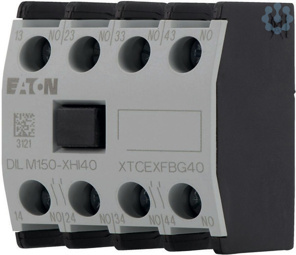 Hilfsschalterbaustein, mit zwangsgeführten Kontakten, Funktion: für Standardanwendungen, 4-polig, Anschlusstechnik: Schraubklemmen, Bemessungsbetriebsstrom AC-15 220 V 230 V 240 V: Ie= 6 A, Bemessungsbetriebsstrom AC-15 380 V 400 V 415 V: Ie= 4 A, Kontaktbestückung S = Schließer: 4 S, Montageart: Frontbefestigung, verwendbar für: DILM40?, DILM50?, DILM65?, DILM72?, DILM80?, DILM95?, DILM115?, DILM150?, DILM170?, DILMP63?, DILMP80?, DILMP125?, DILMP160?, DILMP200?, DILMF40?, DILMF50?, DILMF65?, DILMF80?, DILMF95?, DILMF115?, DILMF150?, Ausführung: Aufbauhilfsschalter, Hinweise: Zwangsgeführte Kontakte, nach IEC/EN 60947-5-1 Anhang L, innerhalb der Hilfsschalterbausteine, Hilfsöffner verwendbar als Spiegelkontakt nach IEC/EN 60947-4-1 Anhang F (nicht Spätöffner)