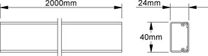 Elektroinstallationskanal, mit Deckel und einreihiger Befestigungslochung im Boden, ohne Trennwand, halogenhaltig. Halteklammern 638/3040 bitte gesondert bestellen. VDE zertifiziert! Abmessungen (ca. Maße) H x B : 24 x 40 mm einreihige Bodenlochung