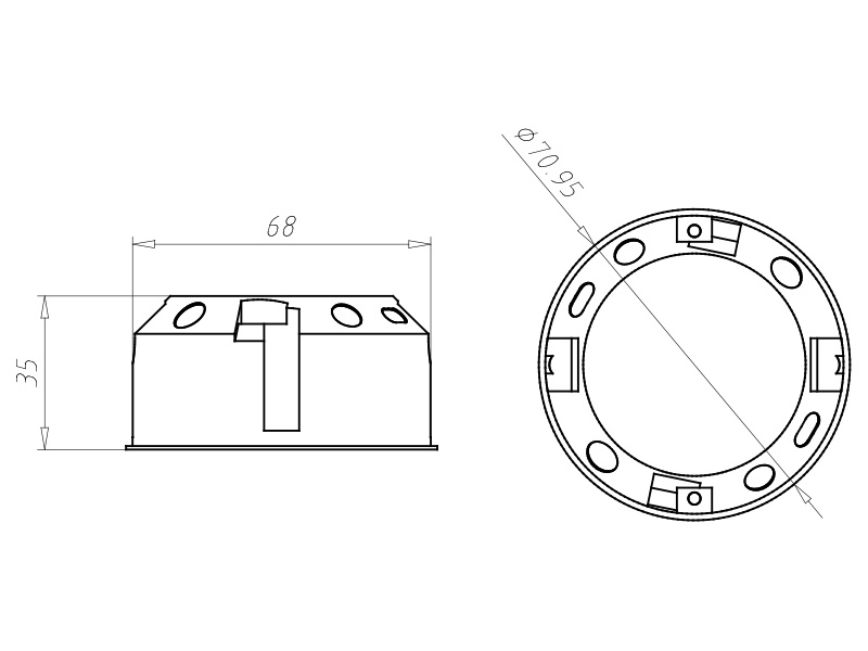Hohlwand Gerätedose, für dünne Beplankung, h= 35 mm, mit Geräteschrauben