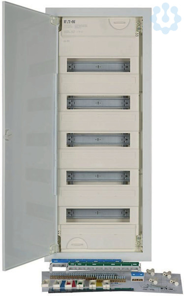 Hohlwand-Kleinverteiler KLV, Schutzklasse II, Kunststoff-Kapselung mit Stahlblechtür, Frontabdeckung plombierbar und laserbeschriftet entsprechend IEC/EN 60670-24, plus 2 Teilungseinheiten Reserve je Reihe, Markierungsschlitze im Mauerkasten, flaches Türrahmendesign, stabiler Türdrehriegel optional austauschbar durch Sicherheitsschließung, Kabelhalter für aufgeräumte Verdrahtung, umfangreiches Zubehörsortiment, Lieferumfang: Gehäuse, Geräteträger, Frontabdeckung, Null- und Schutzleiterklemmen mit SK Schraubtechnik, Libelle, 3D-Putzausgleich mit bis zu 18mm Tiefenausgleich, Kabelhalter, Hohlwandanker, Montageanleitung, Beschriftungsbogen, praxisgerechte Spezialverpackung. Normen: Entsprechend IEC/EN 60670-24 (PD), IEC/EN 62208 und somit für Verteilungen nach IEC/EN 61439-3 freigegeben.