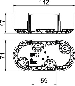 DoppelteHohlwand-GerätedosefürdenEinsatzinHohlwändenmiteinerEinbautiefevonmindestens47mmundeinerPlattenstärkevon5-40mm. 2x3Schraubdome Geräteschrauben,Klemmlaschen 4Kombi-RohreinführungenbisØ20und25mm 4EinführungenfürNYM-Leitungen3x1,5mm 2EinführungenfürNYM-Leitungen3x2,5mm²oder5x1,5mm² 2EinführungenfürNYM-Leitungen5x2,5mm²oder7x1,5mm² VerbindungmitweiterenGerätedosenüberVerbindungsstutzenTypZH11-VGemäßIEC61670-1,IEC61670-22undDIN49073-1.