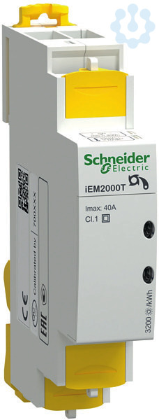 Acti 9 iEM2000 Baureihe. iEM2000T Energiezähler, 1-phasig, 1 x Impulsausgang, ohne mechanisches Rollenzählwerk. Ausgang_S0 ja, max. Strom 40, TE 1. Wechselstromzähler zur Direktmessung. Digitaleingang für Tarifumschaltung, Teilzähler mit Resetfunktion, erweiterte Messfunktion Wirk- & Blindenergie (Bezug & Abgabe), Strom, Spannung, Wirk- & Blindleistung, Leistungsfaktor, Frequenz bei kommunikativen Varianten. Genauigkeit Klasse 1 (IEC 62053-21 und IEC61557-12) bzw. Klasse B (EN50470-3). Kommunikationsoptionen M-Bus oder Modbus RTU (RS 485). Messgeräterichtlinie MID 2004/22/EG muss das Messgerät in einem Schrank oder Gehäuse mit Schutzart IP51 oder besser verbaut sein.