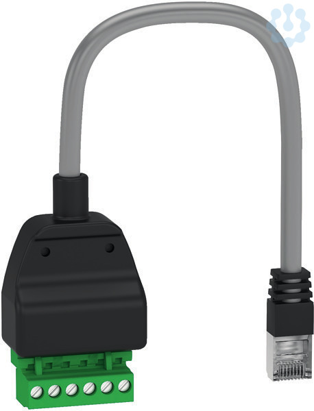 IFM Modbus Adapterkabel RJ45 mit Klemmleiste. Das Adapterkabel besitzt einen RJ45-Anschluss für den ULP-Bus einerseits. Andererseits eine 5-polige Klemmleiste zum Anschluss von offenen Leitungen.
