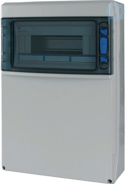 IKA Feuchtraumkleinverteiler RAL7035, mit Neutral- und Schutzleiterklemme, CNC geschäumte Dichtung für Schutzart IP65 nach IEC/EN 62208, 18 Teilungseinheiten, 1-reihig, UV stabil nach DIN EN ISO 4892-2, für den Bau von Installationsverteilern nach IEC/EN 61439-3 VDE 0660-600-3 zugelassen, integrierte Modulkompensation für unterschiedliche Gerätebreiten, metrische Leitungsvorprägungen mit Zentrierungspunkt, Gehäuse komplett aus Polycarbonat (UV-beständig), zum Einbau von Schalt- und Schutzgeräten nach Maßnorm DIN 43 880 mit 70 mm oder 85 mm Einbautiefe, AC 1000 V, DC 1500 V, RoHs-konform, Bestehend aus Kunststoffunterteil mit Hutprofilschiene aus verzinktem Stahlblech, Hutschiene tiefenverstellbar in 2 Positionen, direkt Montage Wandbefestigungslöcher, fingersichere Neutral- und Schutzleiterklemme IP2X, Vorprägung für metrische Leitungseinführungen oben und unten, seitliche Vorprägungen für Verbindungselemente zur Verbindung von zwei oder mehreren Gehäusen nebeneinander, Oberteil mit 46 mm Geräteöffnung, trans