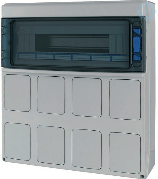 IKA Feuchtraumkleinverteiler RAL7035, mit Neutral- und Schutzleiterklemme, CNC geschäumte Dichtung für Schutzart IP65 nach IEC/EN 62208, 18 Teilungseinheiten, 1-reihig, UV stabil nach DIN EN ISO 4892-2, für den Bau von Installationsverteilern nach IEC/EN 61439-3 VDE 0660-600-3 zugelassen, integrierte Modulkompensation für unterschiedliche Gerätebreiten, metrische Leitungsvorprägungen mit Zentrierungspunkt, Gehäuse komplett aus Polycarbonat (UV-beständig), zum Einbau von Schalt- und Schutzgeräten nach Maßnorm DIN 43 880 mit 70 mm oder 85 mm Einbautiefe, AC 1000 V, DC 1500 V, RoHs-konform, Bestehend aus Kunststoffunterteil mit Hutprofilschiene aus verzinktem Stahlblech, Hutschiene tiefenverstellbar in 2 Positionen, direkt Montage Wandbefestigungslöcher, fingersichere Neutral- und Schutzleiterklemme IP2X, Vorprägung für metrische Leitungseinführungen oben und unten, seitliche Vorprägungen für Verbindungselemente zur Verbindung von zwei oder mehreren Gehäusen nebeneinander, Oberteil mit 46 mm Geräteöffnung, trans