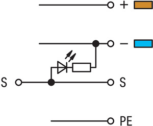 4-Leiter-Initiatorenklemme. LED rot. für PNP-(plus-)schaltende Initiatoren. 2,5 mm². CAGE CLAMP®. 2,50 mm². grau