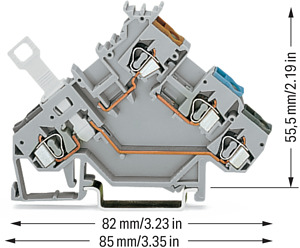 3-Leiter-Initiatorenklemme. mit farbig bedruckten Leitereinführungen. 2,5 mm². CAGE CLAMP®. 2,50 mm². grau