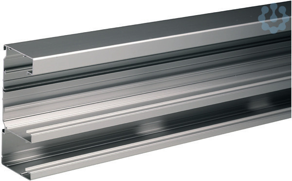 INKA 161-2/72 Unterteil 2500mm, Aluminium natureloxiert TYP: INKA-U 161-2/72 AN: Aluminium-Brüstungskanal mit zwei Funktionsräumen, geprüft nach VDE 0604, mit einem fest eingebauten gelochten Mitteltrennsteg und je einer innenliegenden 80mm und 40mm Frontabdeckung. Inklusive Profilierung zur Aufnahme von bis zu drei Trennstegen aus PVC oder Aluminium und einer Profilierung zur schraubenlosen Schnellmontage mittels Wandkonsolen. Der Einbau von Installationsgeräten muß ohne zusätzliche Geräteplatten möglich sein. Gerätedosen können frontrastend eingesetzt werden, so daß kein Kontakt zur Rückwand entsteht. Der gesamte Raum hinter der Dose bleibt zur Leitungsverlegung erhalten.