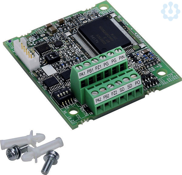 Vektorregelung mit Encoder-Rückführung. Es kann eine Vektorregelung mit Impulsgeber-Rückführung ausgeführt werden. Die Encoder Rückführung ermöglicht eine hochpräzise Drehzahl-, Drehmoment- und Positionsregelung. 5 V TTL Differenzausgang, 1024-4096 Impulse, 11-30 V HTL Komplementärausgang