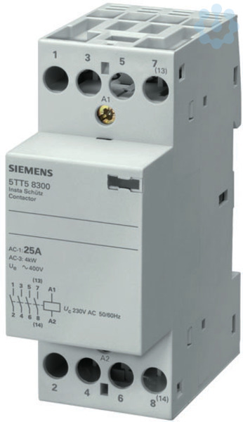 INSTA-Schütz mit 4 Schließern Kontakt für AC 230V, 400V 25A Ansteuerung AC 230V Siemens Schaltgeräte für Anwendungen im Wohn-, Zweckbau und industriellen Anwendungen. Die innovativen Schaltgeräte von Siemens sind ein wichtiger Bestandteil der SENTRON Komponenten für die Elektroinstallation. Mit den Fernschaltern, Schaltrelais, Insta-Schützen und Zeitschaltuhren bieten sie zahlreiche Möglichkeiten zur Realisierung diverser Schaltfunktionen. Ob für Wohnbau, Infrastruktur oder industrielle Anwendungen, Siemens bietet das richtige Portfolio für alle Schaltfunktionen. So haben Sie für jede Anforderung das passende Gerät! Die Schaltgeräte von Siemens zeichnen sich vor allem aus durch: 1. Komfortable und einfache Montage- sowie Anschlusstechnik. 2. Zuverlässige Sicherheit bei der Installation dank standardmäßigem Berührungsschutz. 3. Umfangreiches und problemlos montierbares Zubehör. 4. Optimale Technik für Ihre Sicherheit - nur von Siemens. www