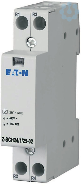 Installationsschütz, Steuerspannung 24V AC, Bemessungsbetriebsstrom AC1 25A, Funktion: 2 x Öffner, Einfache Schnappbefestigung auf 35mm Hutschiene, 1TE, Normen IEC/EN 60947-4-1, IEC/EN 61095 und VDE 0660-5-1