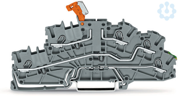 Installationsetagenklemme. mit Betätigungsöffnung. 2,5 mm². mit schwenkbarem Trennmesser. LT/L/PE. Push-in CAGE CLAMP®. 2,50 mm². grau